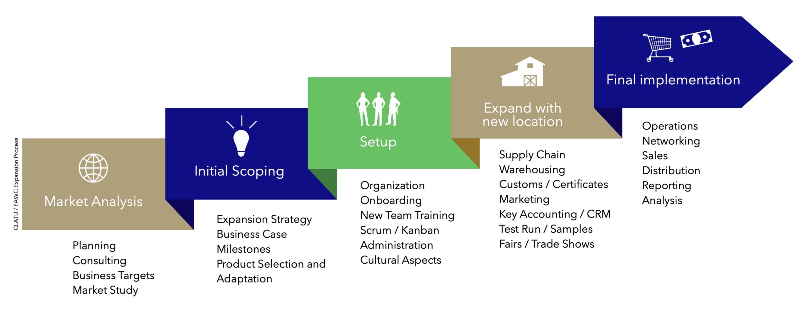 Neue Märkte zu identifizieren und zu erschließen ist also eine völlig neue Herausforderung.  Jetzt kommen Strategien zur internationalen Markterschließung ins Spiel. Der erste Schritt in ein neues Land ist dabei extrem schwierig, aber von zentraler Bedeutung, weil man sich durch falsch ausgesuchte Partner oder solche mit zweifelhaften Geschäftsmethoden sehr schnell und leider auch nachhaltig den Unternehmensruf auf dem jeweiligen Markt zerstören kann. Um Sie vor einem derartigen Misserfolg zu bewahren, begleiten wir Sie bei der systematischen Entwicklung von Auslandsmärkten.